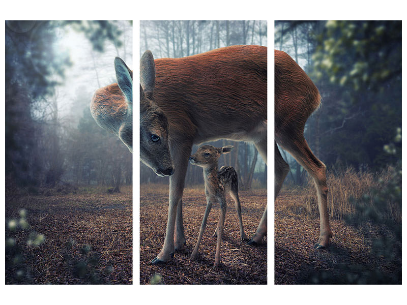 Stampa su tela 3 pezzi Mother And Fawn