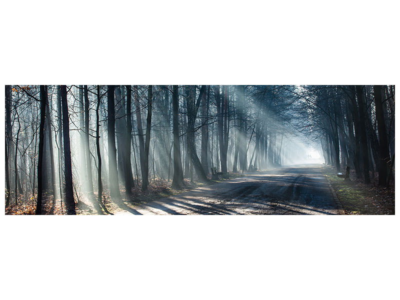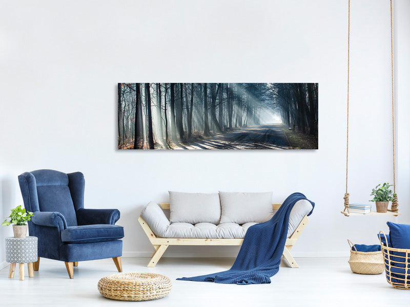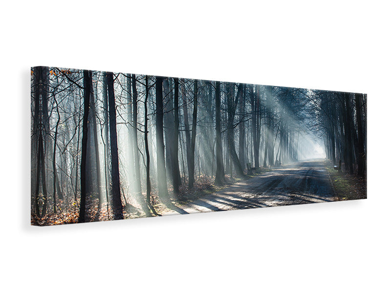 Canvas Schilderij panaoramaformaat Forest In The Light Beam