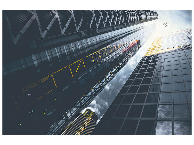 Leinwandbild Hubschrauber über Wolkenkratzer