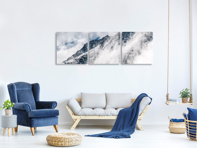 Panorama Leinwandbild 3-teilig Bergsicht mit Wolken